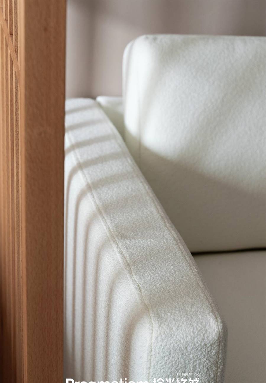 ▲進門右手邊就是衛生間,衛生間門設計成隱形門,兼具顏值與實用性。將干區洗手台外移,并在內部安裝了黑框玻璃移門,做徹底的三分離設計,保證空間的干凈清爽。