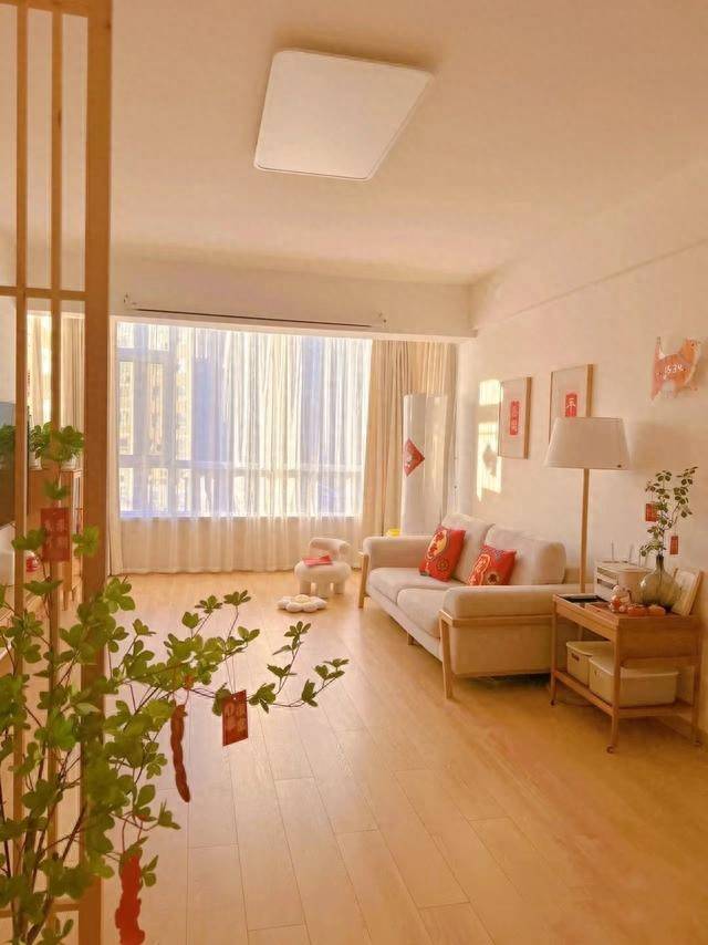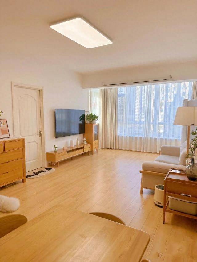通過將陽台與室內打通,不僅擴大了使用面積,還使整個空間顯得開闊而通透這種設計沒有設置繁瑣的吊頂,保持了天花板的自然高度,一下子拉伸了空間的視覺高度