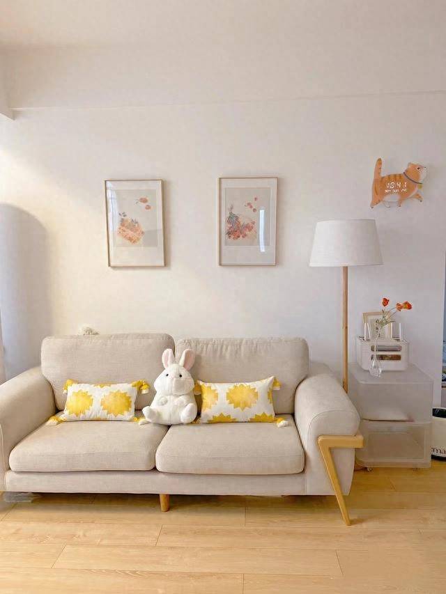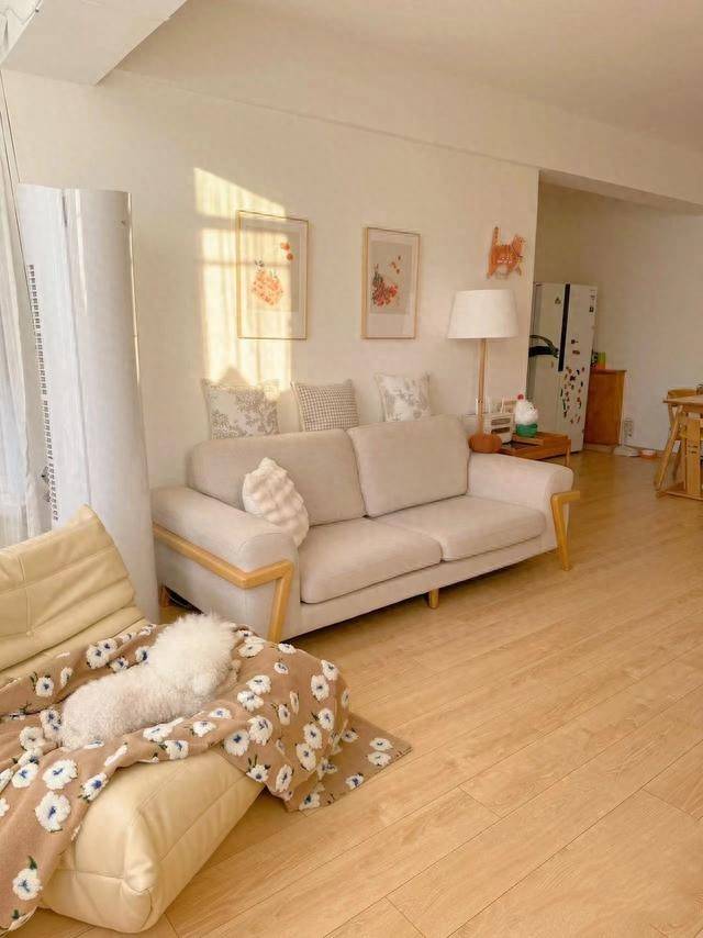 沙發則是一抹奶白色調的雙人位矮腳設計,柔和輕盈的線條仿佛為人們打造了一個溫馨、舒適的休憩角落。這樣的設計讓人們仿佛置身于輕松宜人的氛圍中,放松身心。