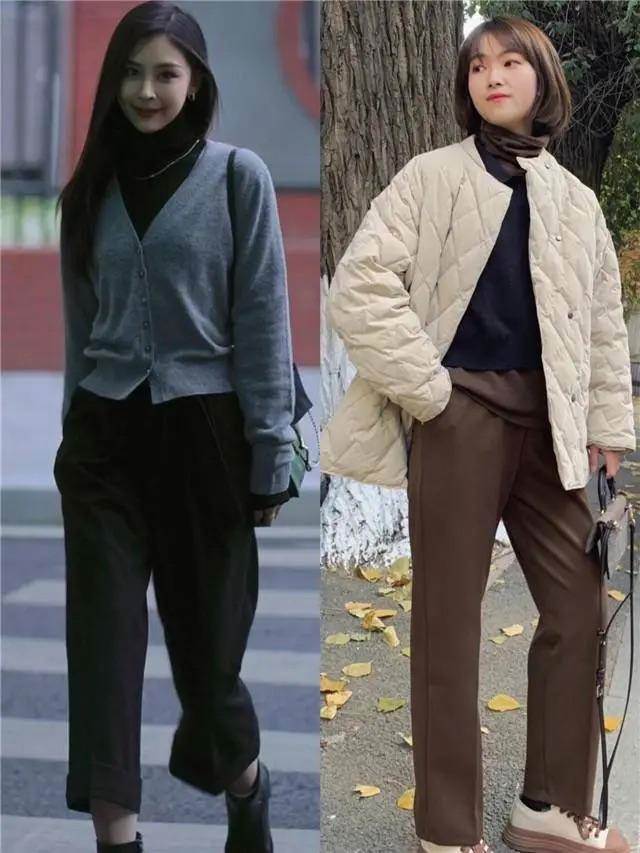 小黑褲與闊腿褲,其實在視覺上是可以形成鮮明對比的。闊腿褲是寬松舒適的,小黑褲則是緊致修身的。