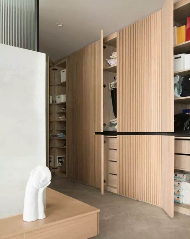 開門的時候是柜子和衣帽間,關門的時候是風格奢華的墻板,設計感十足。