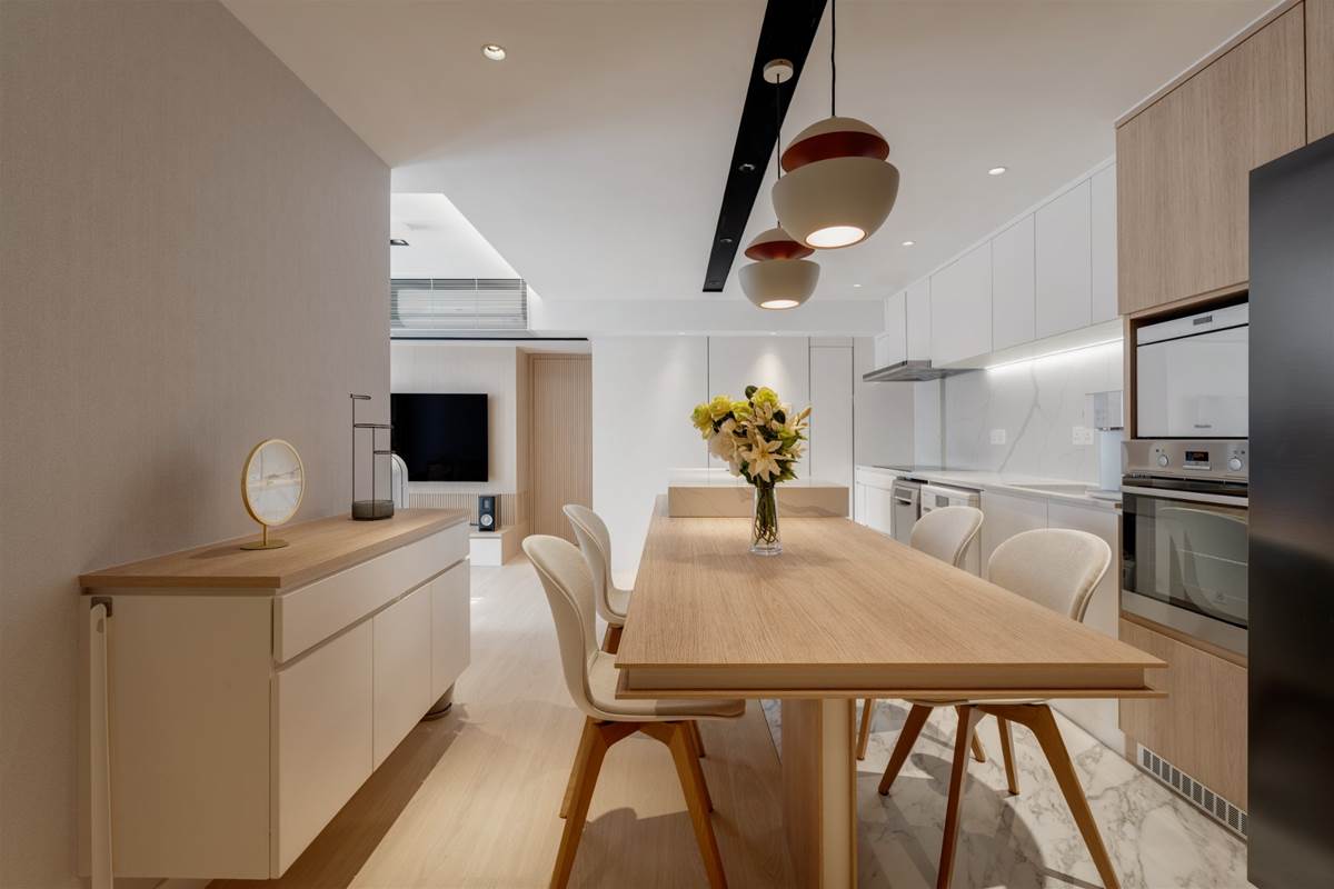 捨棄過多的裝飾原素,只貫徹了簡約的設計語言及平衡、耐看、溫潤的氛圍,讓空間重回舒適耐看的本質,成就恰如其分的生活方式。