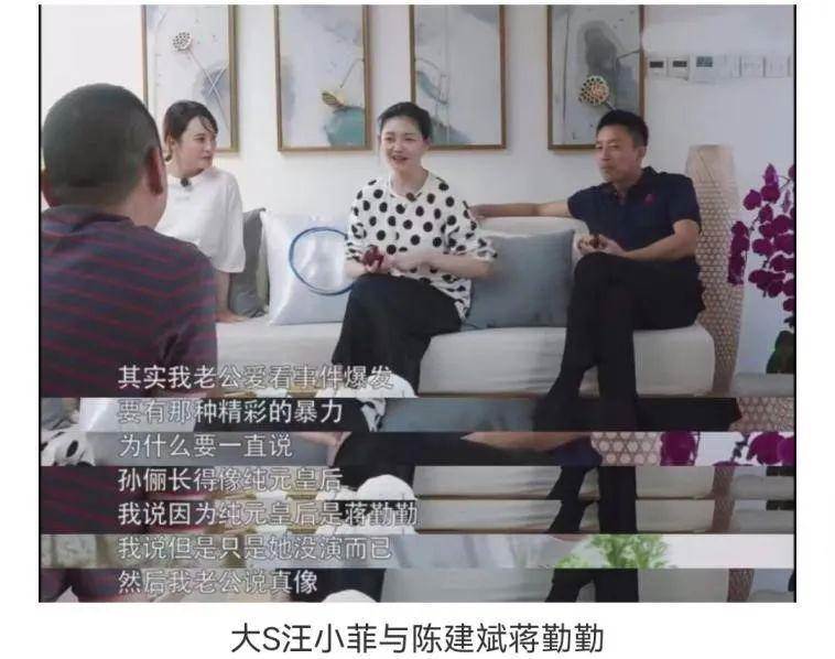 大S對汪小菲說:「因為純元皇后就是蔣勤勤。」于是大S又扭頭問陳建斌:為什麼當時沒有邀請蔣勤勤來飾演純元皇后?
